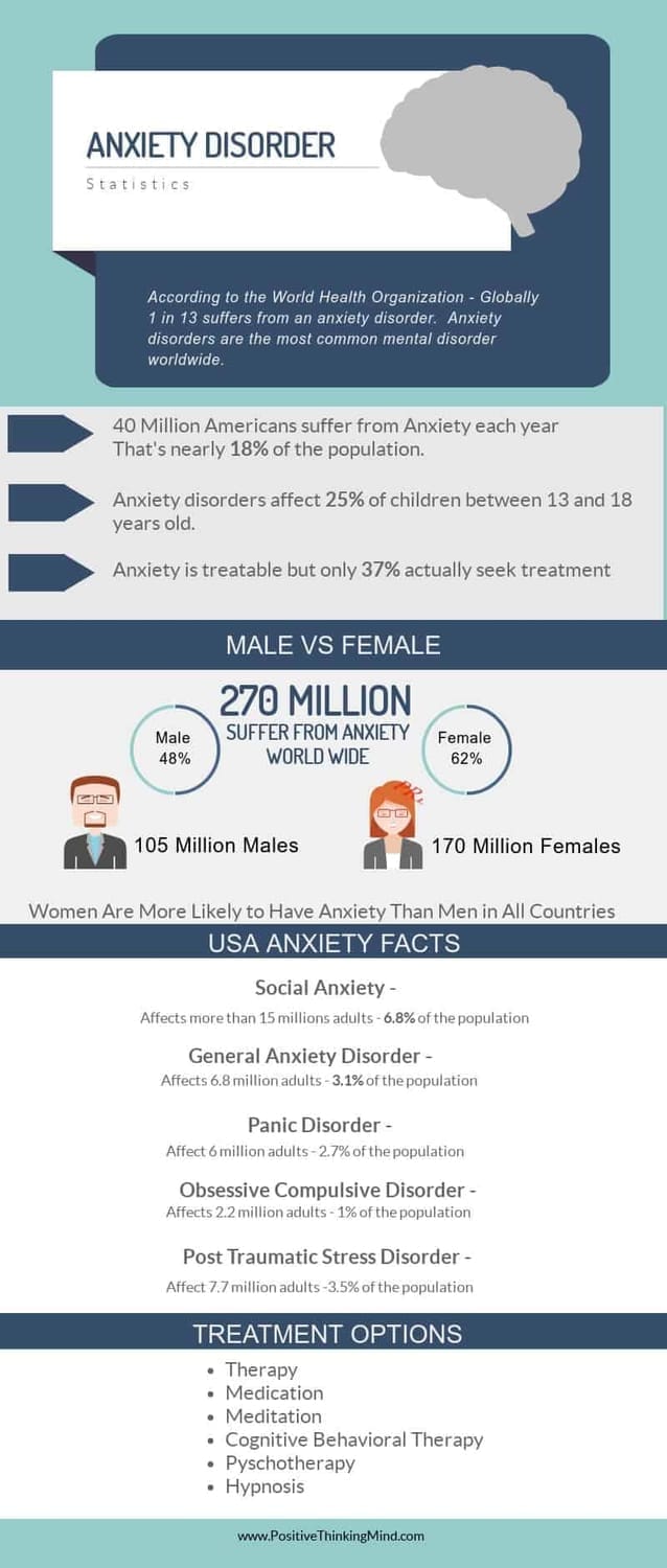 Anxiety Disorders affect nearly 40 million adults in the United States from age 18 and older and is the most common mental illness. That’s about 18.1% of the countries population. National Institute of Mental Health (NIMH)