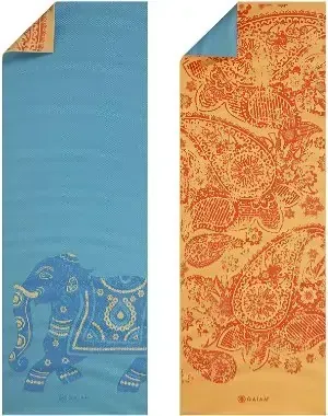 This yoga mat is 68 inches by 24 inches and 5mm thick with an assortment of different patterns and choices. The mat also comes with an online library of helpful videos.