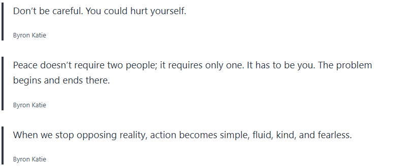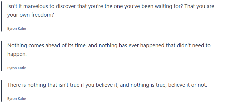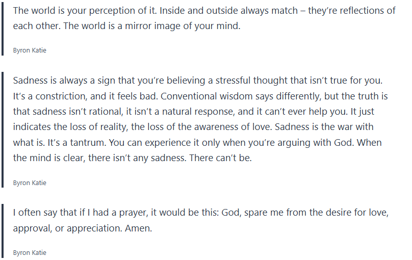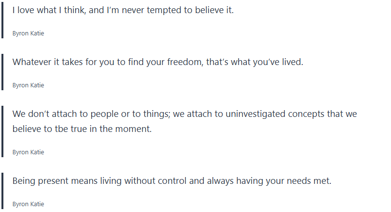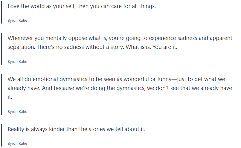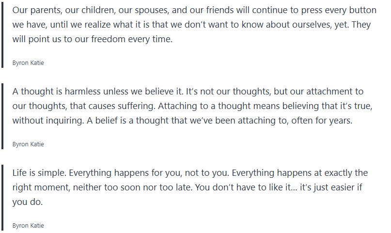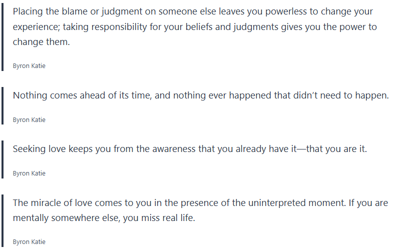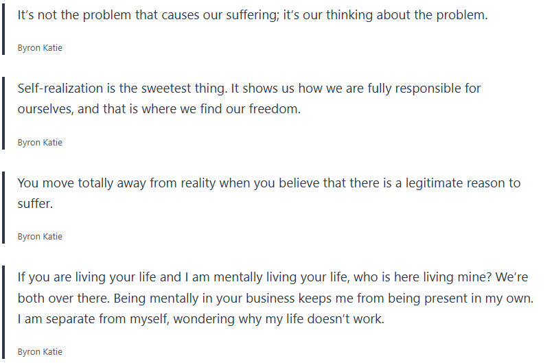 Grab your journal and write some of these quotes by Byron Katie down along with any thought realizations you may have.