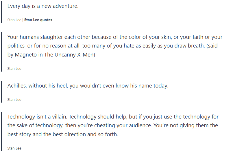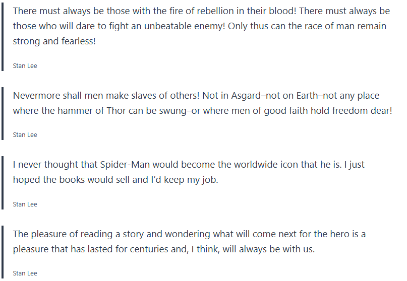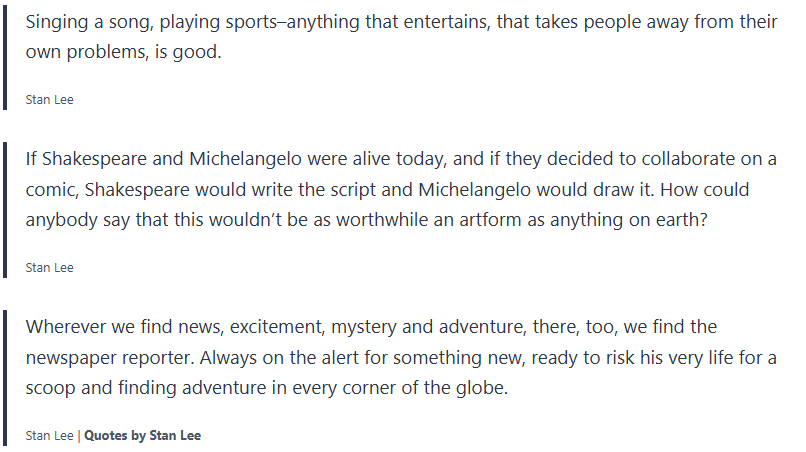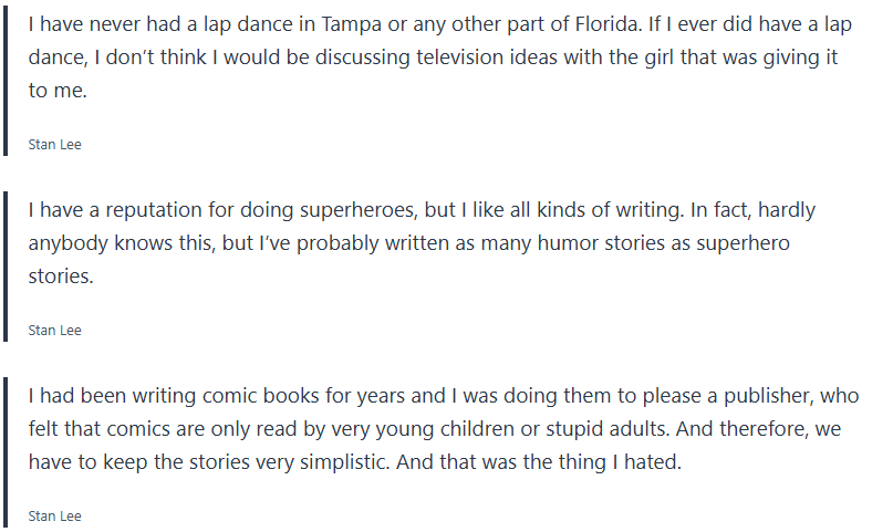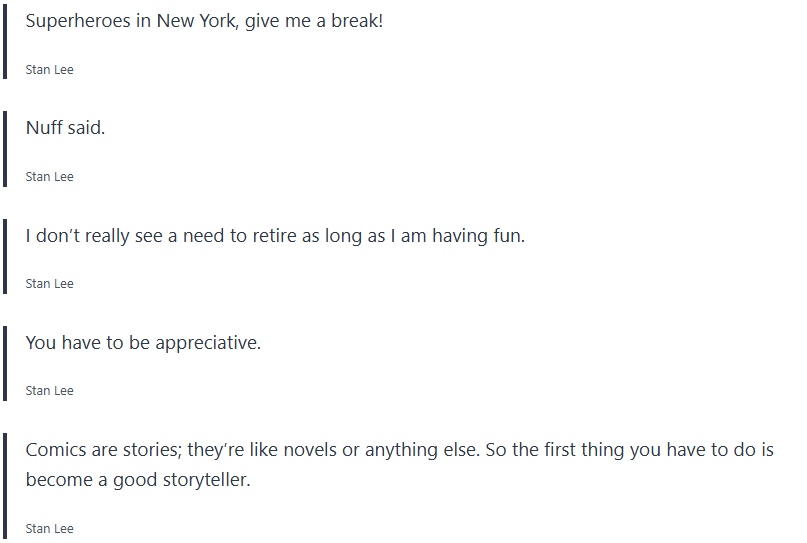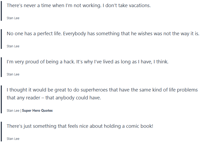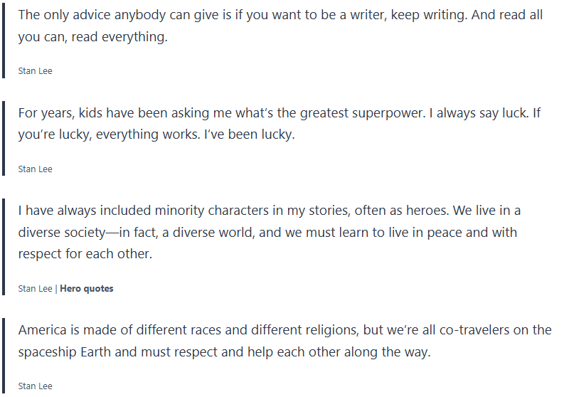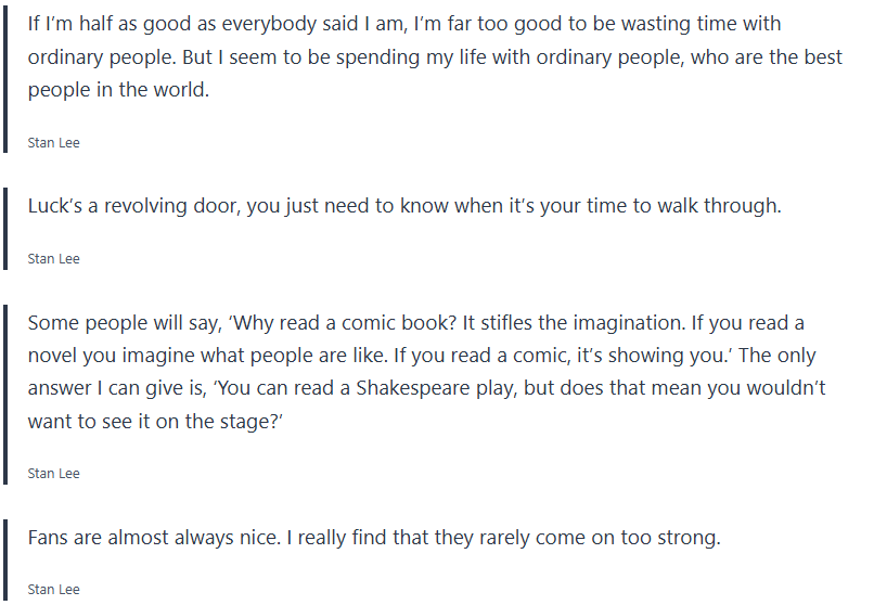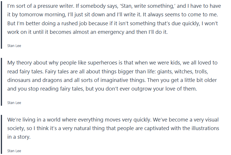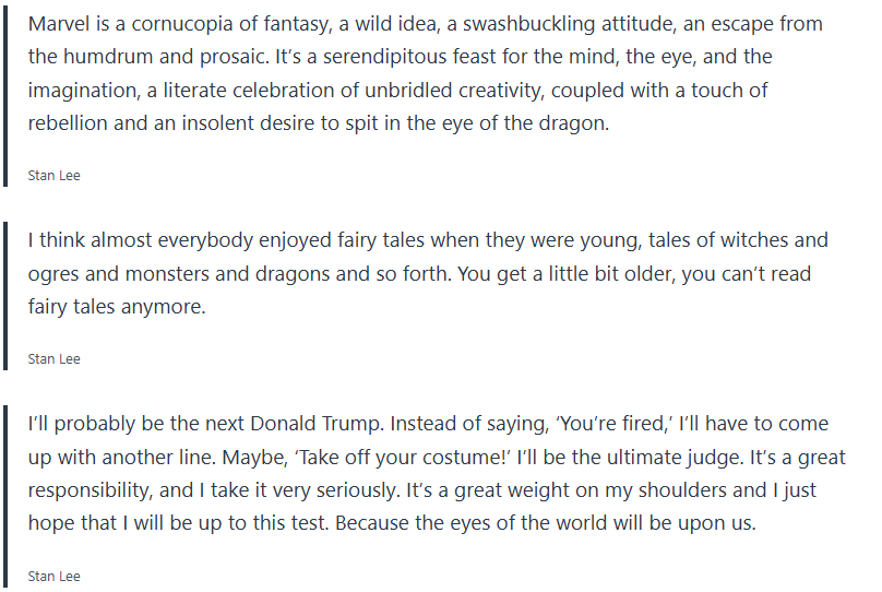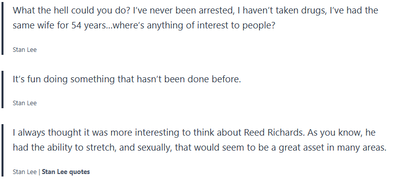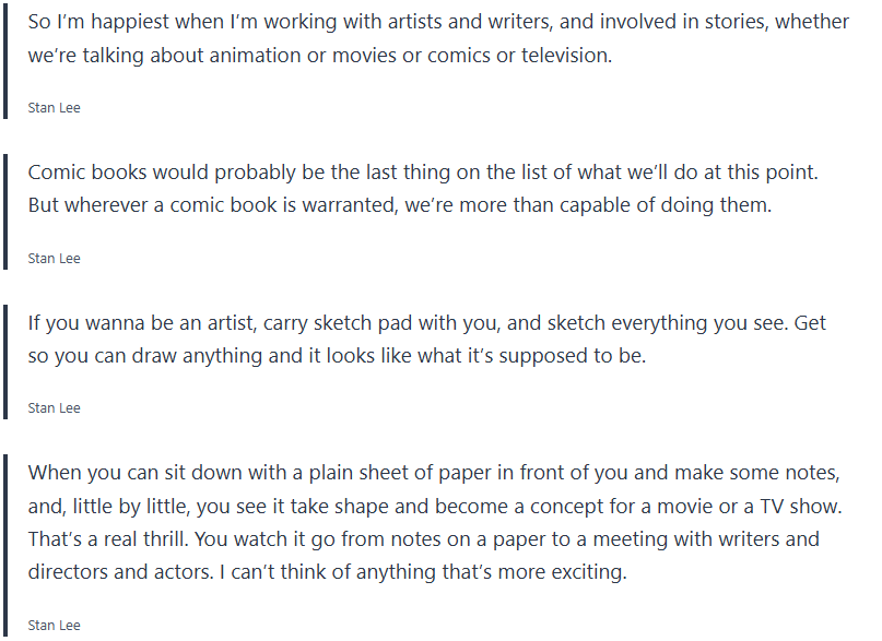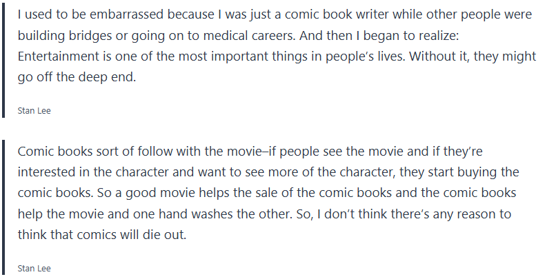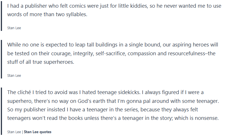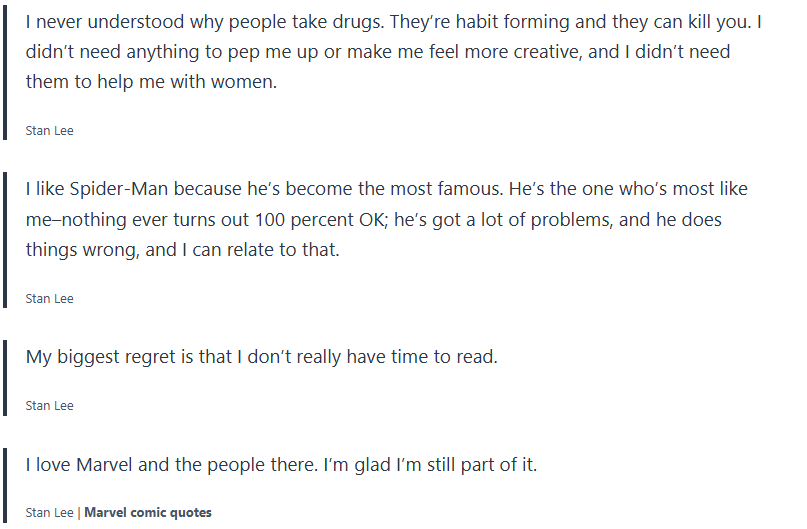 Stan Lee Marvel Comics’ creative leader has many memorable life quotes inspiring people of every walk of life.