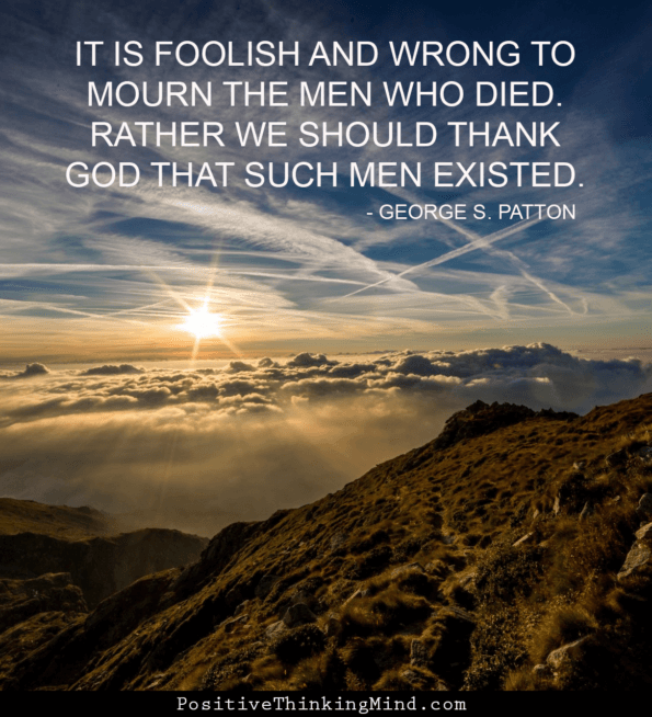 It is foolish and wrong to mourn the men who died. Rather we should thank God that such men existed. – George S Patton