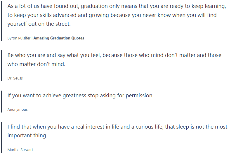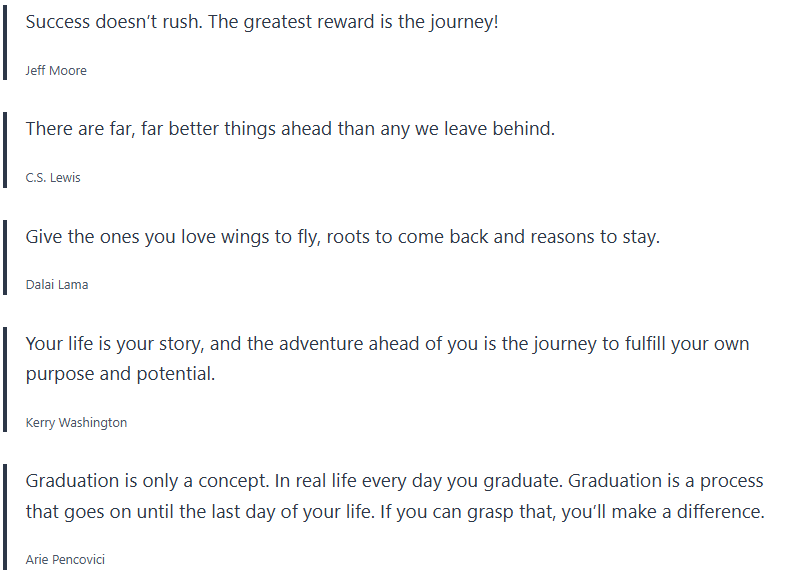 Graduating from school is an exciting time, and many people like to give advice and congratulate graduates with graduation quotes.