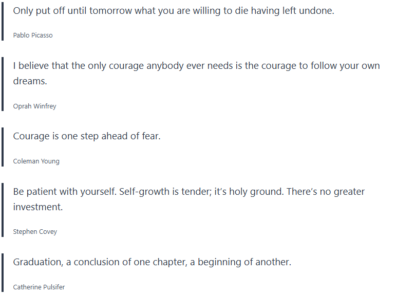 A significant time in many people’s lives, our famous graduation quotes will encourage you to move forward confidently as you celebrate and reflect on your accomplishments.