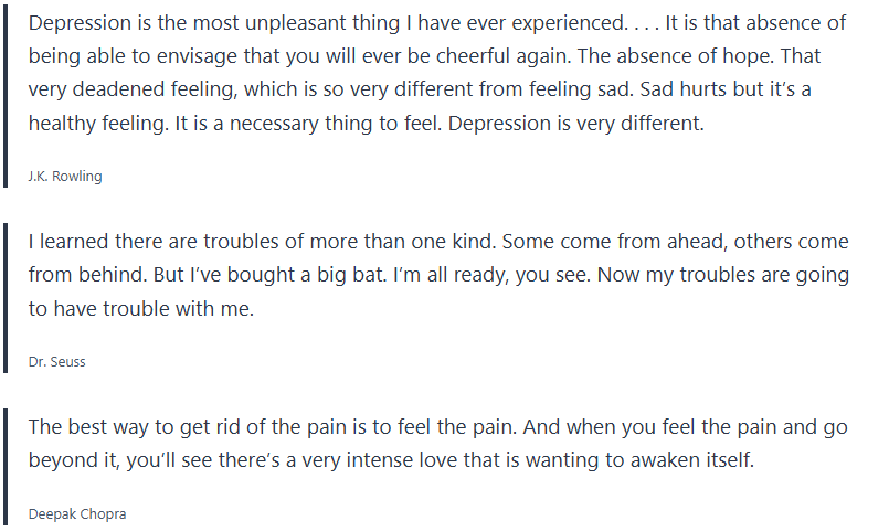 Inspirational quotes for people with depression may be just what you need to regain control and let happiness fill you again. Depression is a challenging life experience, but you can get through it.