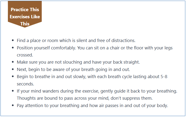 This exercise requires you to focus on your breathing and be aware of the way you inhale and exhale your breath.