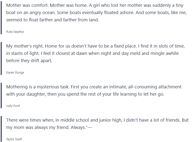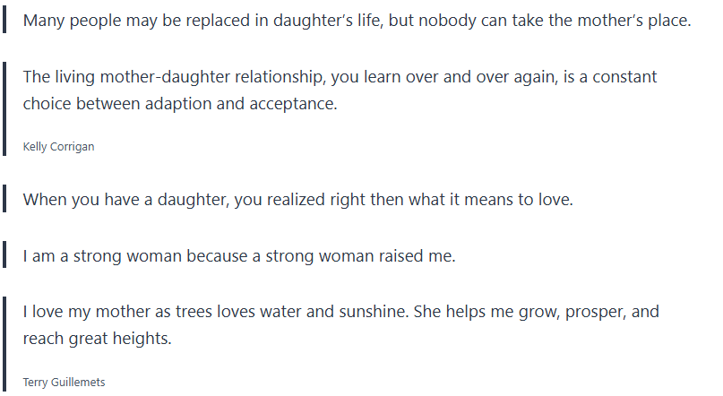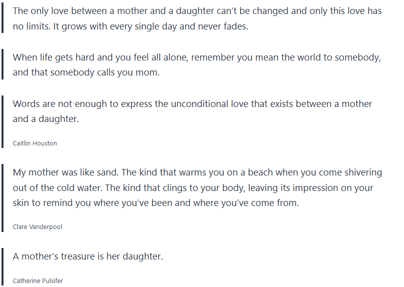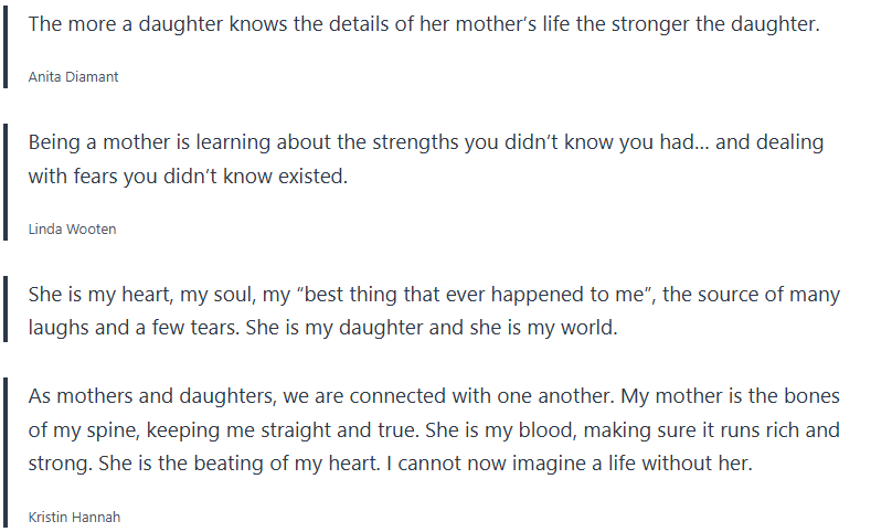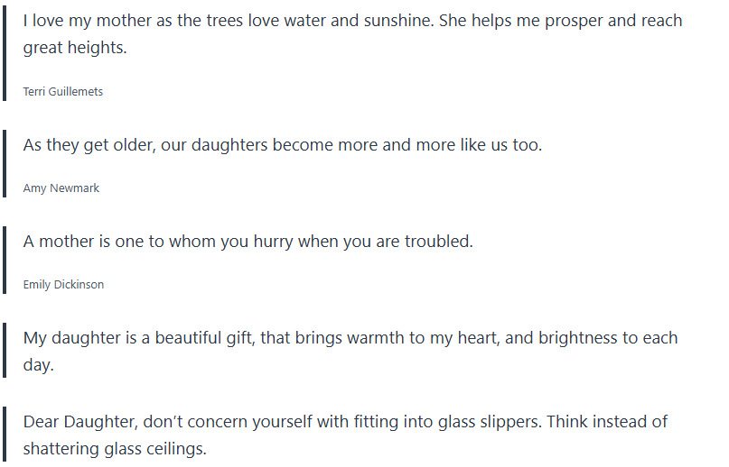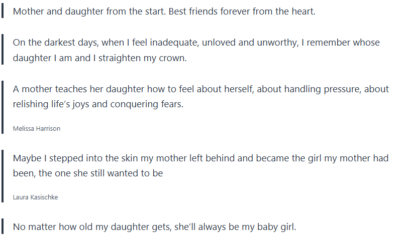 You can send these mother-daughter quotes by text message, email, or leave them a note on the fridge, their lunch, or any cool place that will make them smile when they read it.