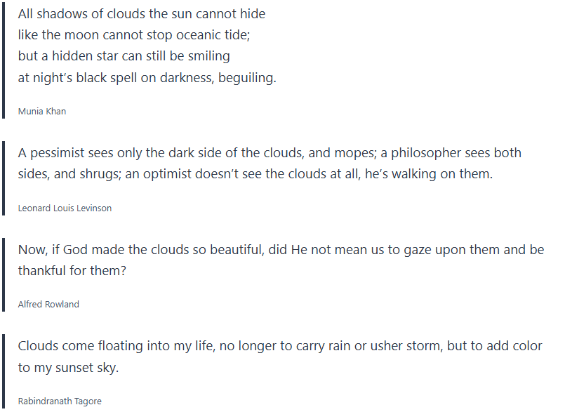 Please enjoy this amazing collection of inspiring clouds quotes and quotes about clouds.