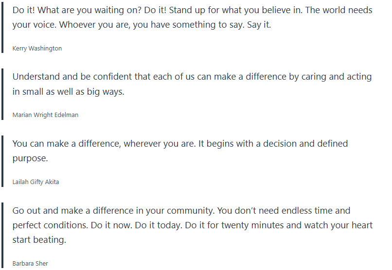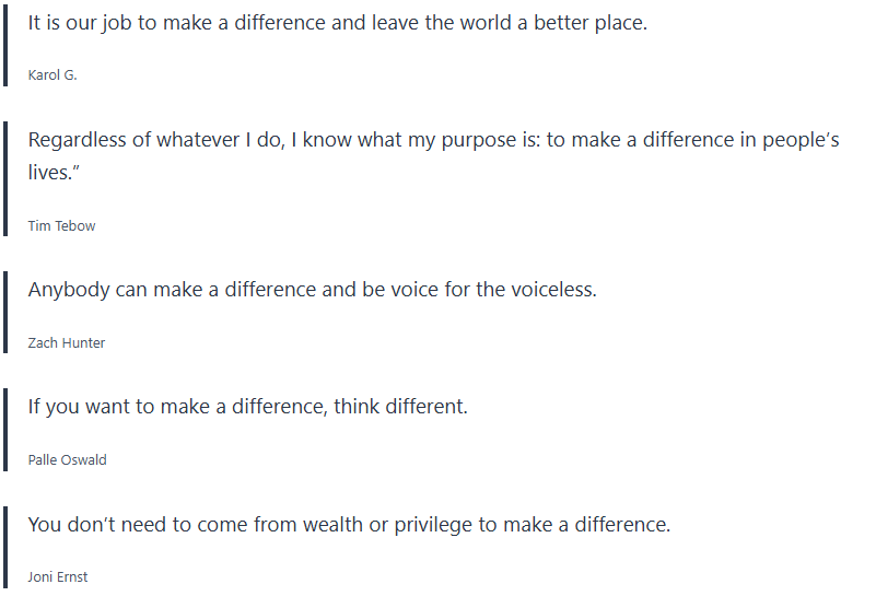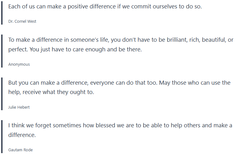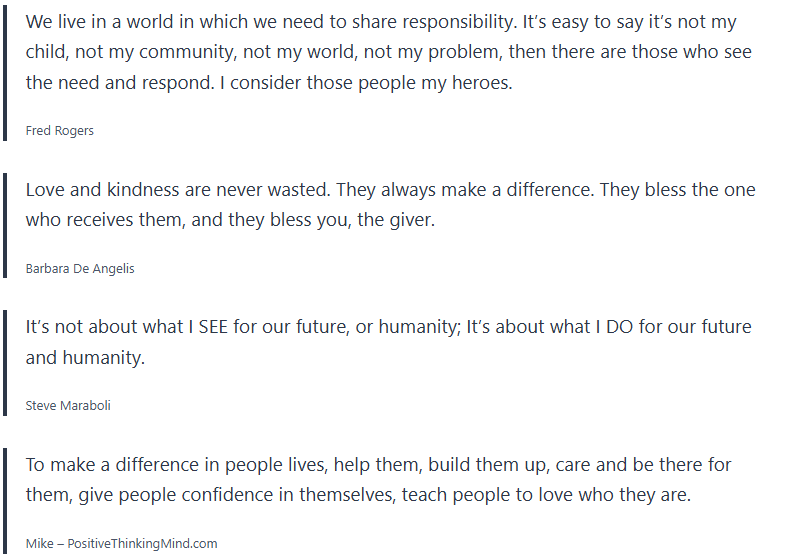 It’s my hope that these quotes about making a difference will inspire you to take action and make a difference in our world.