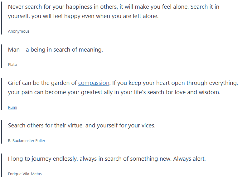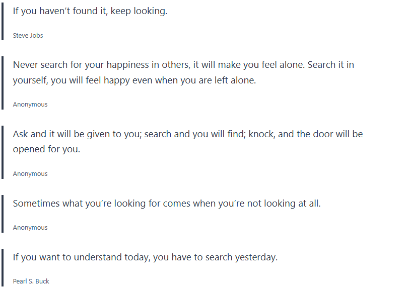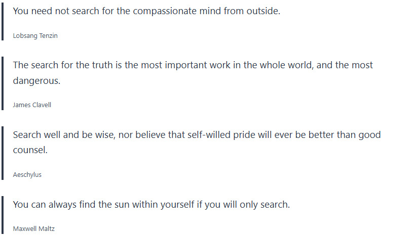 This search quotes collection is put together to inspire you through life on your journey. It includes search sayings and search proverbs.