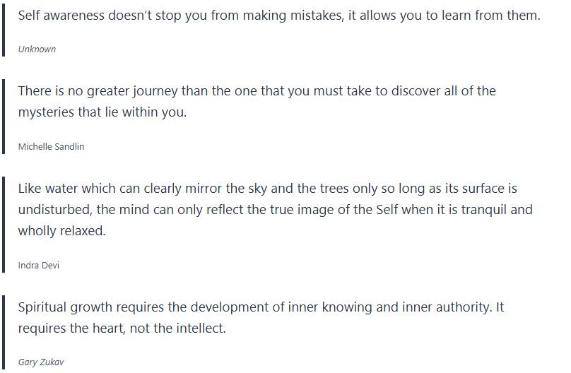 Self-reflection is the key and leads to self-awareness. You look at your actions, emotions, feelings, and thoughts. As you become self-reflect, you dig deeper ask questions such as “Why do I feel this way?”
