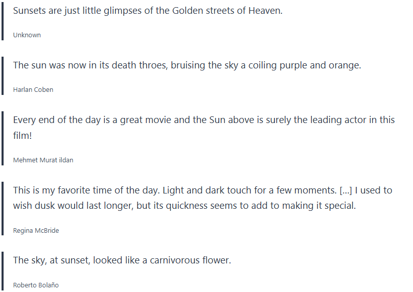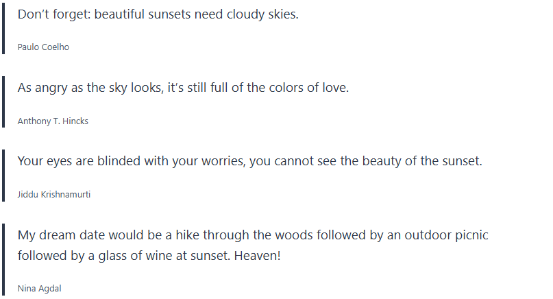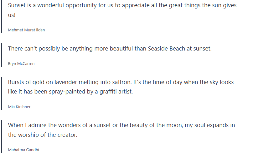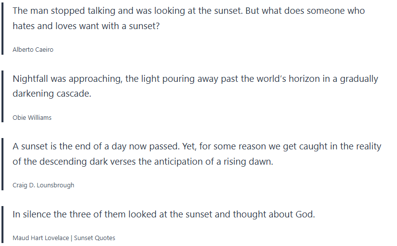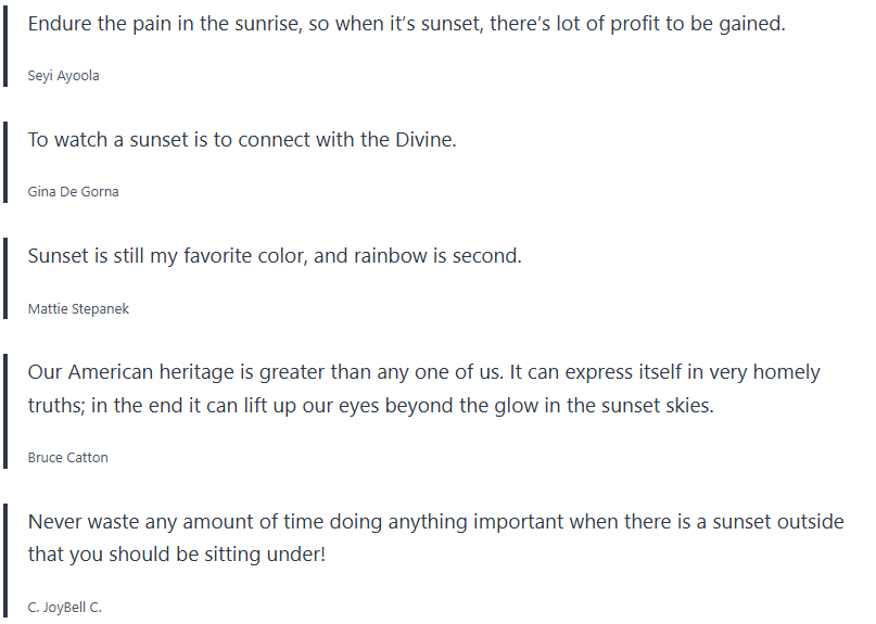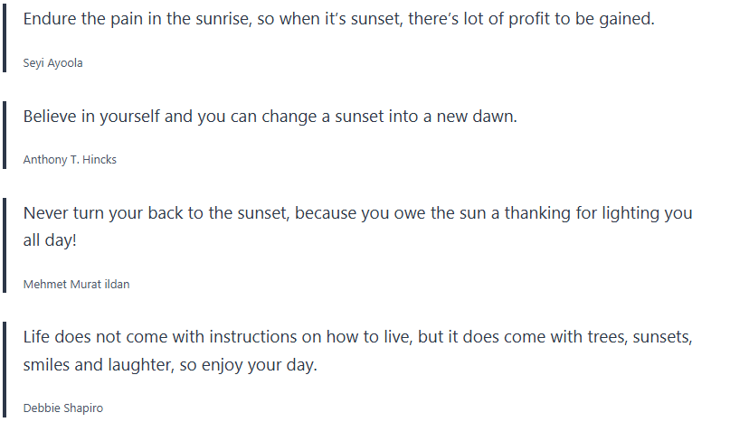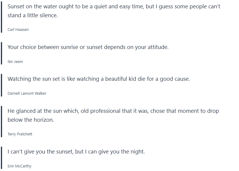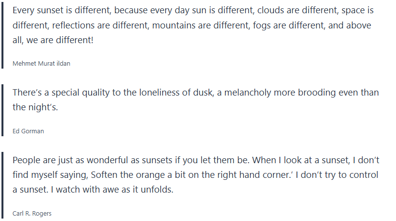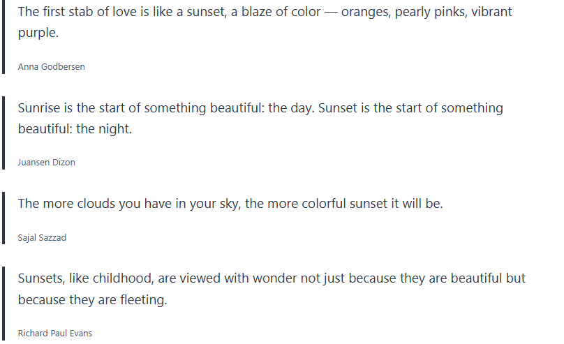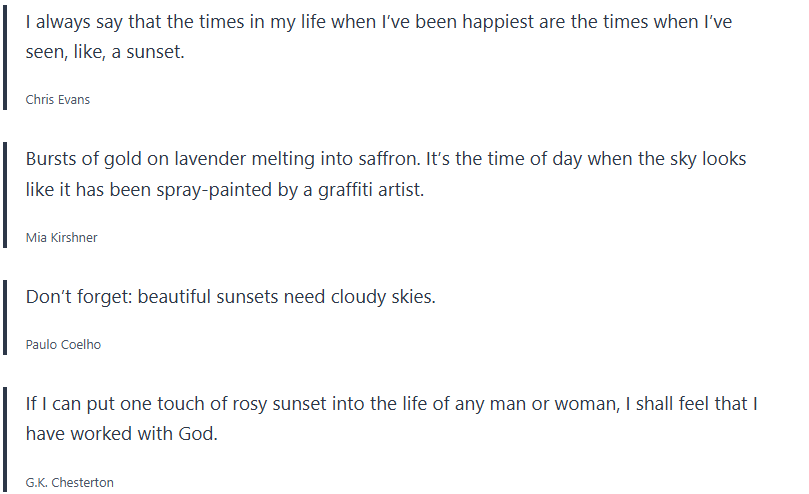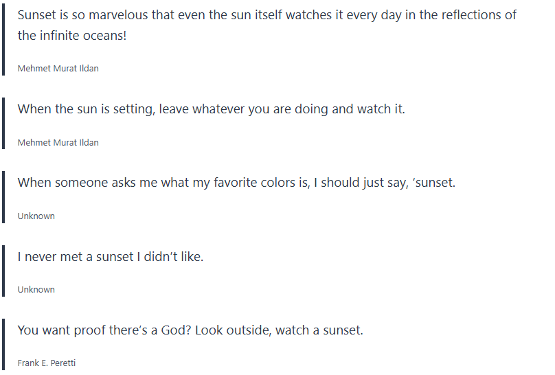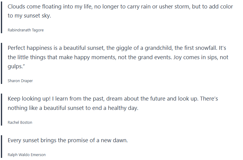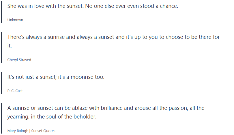 Below are inspirational sunset quotes, sunset proverbs, sunset sayings, which I collected over the years, and wanted to share with you.
