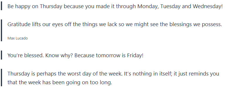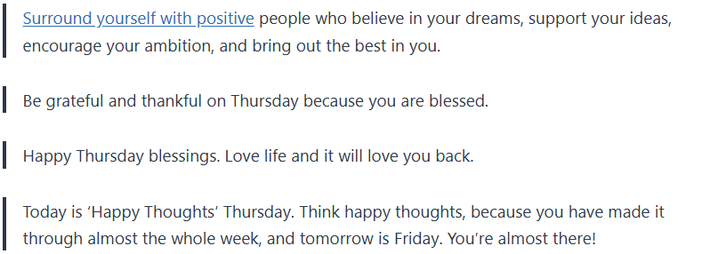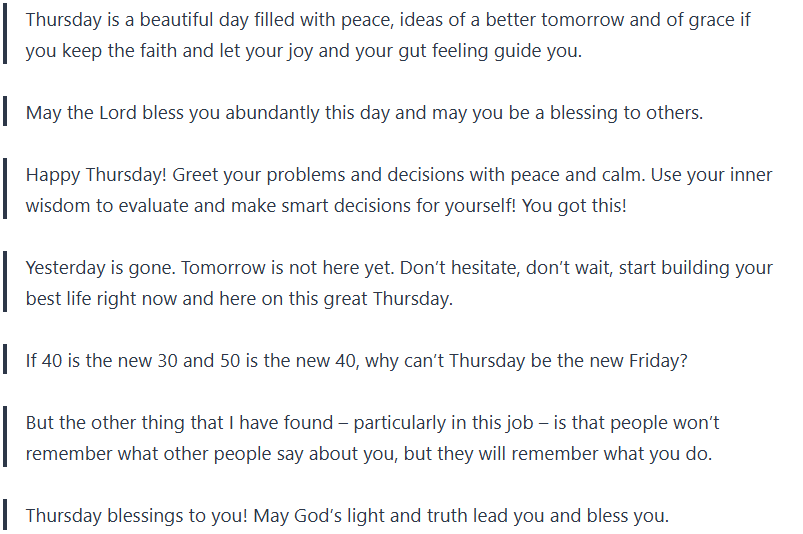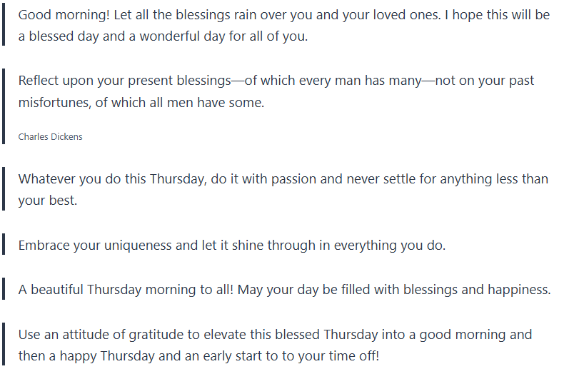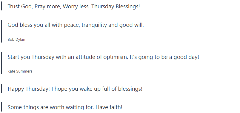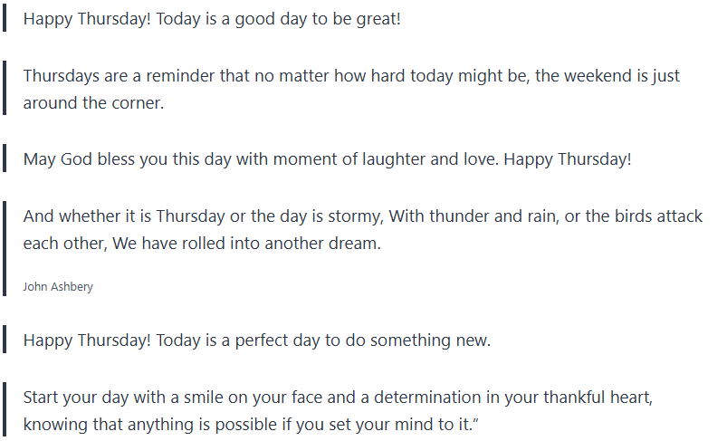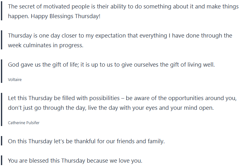Take these Thursday blessings and Thursday quotes and let them bring positivity into your day, inspiration, and gratefulness.